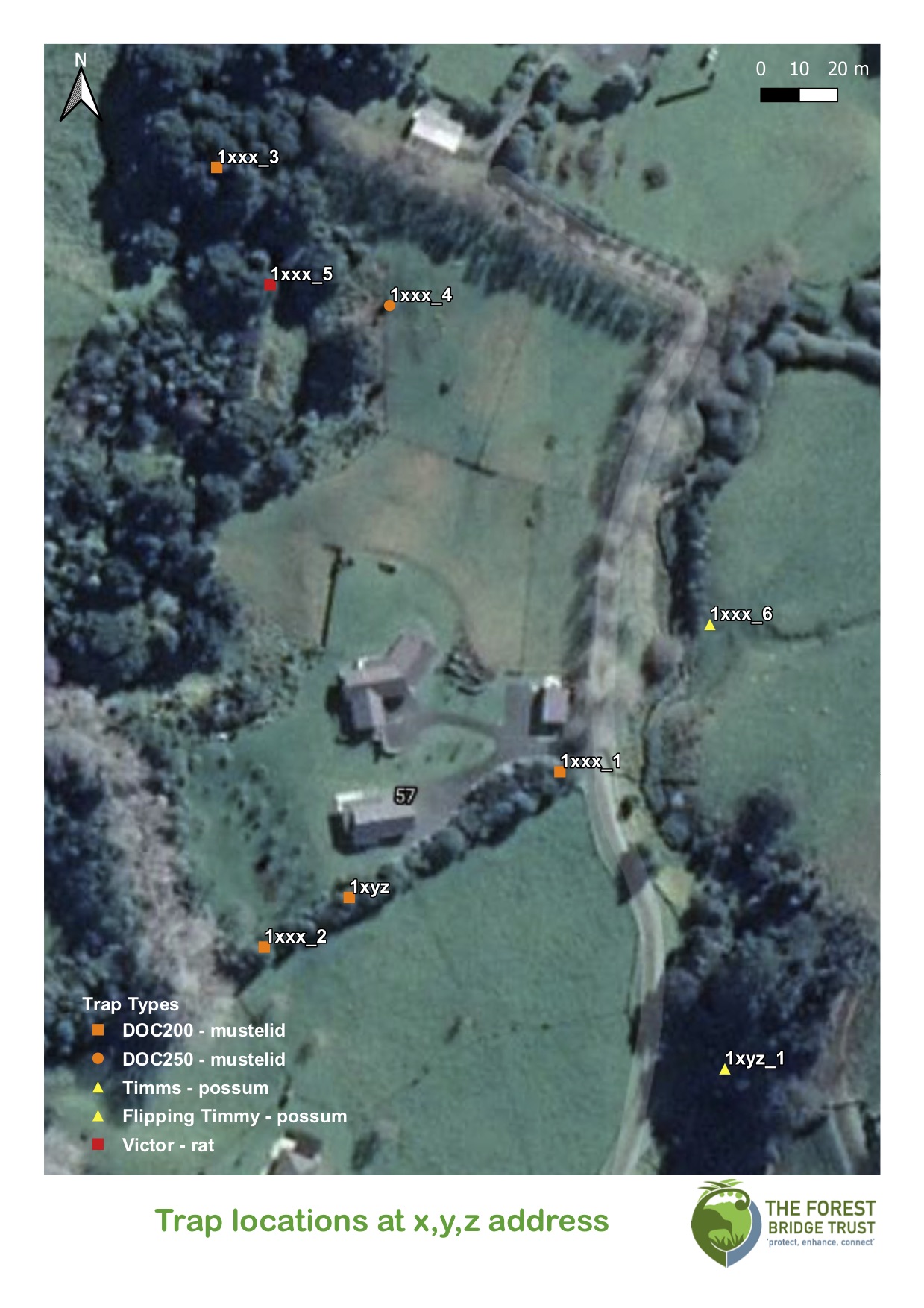 I am an ecologist and have been associated with TFBT for some time and recently joined the team as the GIS and Data Lead. My work involves producing maps for a variety of purposes, including showing predator control trap locations or newly installed fence lines around streams, wetlands and bush remnants. See below for an example of a map produced with GIS (geographic information system) software. For anyone interested in having a go at using GIS, QGIS is open source (free to download) GIS software and there are excellent online tutorials available.