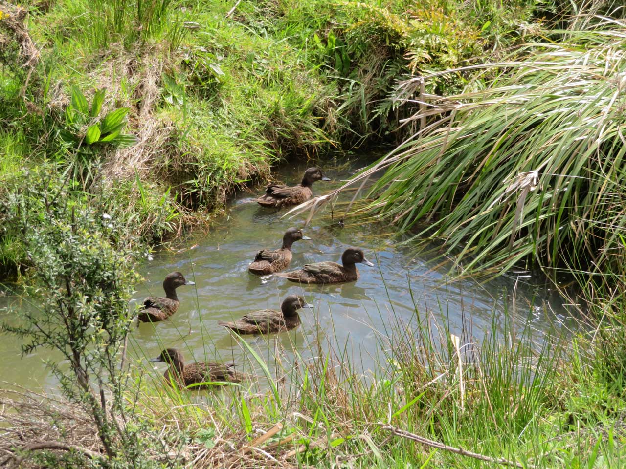 Last week while out doing bird counts at a farm on Tawharanui Peninsula, and as I was looking for a spot to have my lunch next to a creek, I spotted a group of happy Pāteke swimming around. Pāteke are endemic to New Zealand and have suffered a dramatic decline in the last 200 years due mainly to introduced predators. They are currently listed as “recovering” thanks to the increased management and conservation efforts around the country. Between 2008 and 2010 124 Pāteke were released at Tawharanui Regional Park. Since then, they have spread to neighbouring habitats including stormwater ponds and farm dams, they have recently been spotted as far as Matakana Wharf and near Warkworth. As we expect to see more of these around keep an eye out for them, keep up the trapping and dogs on a leash.